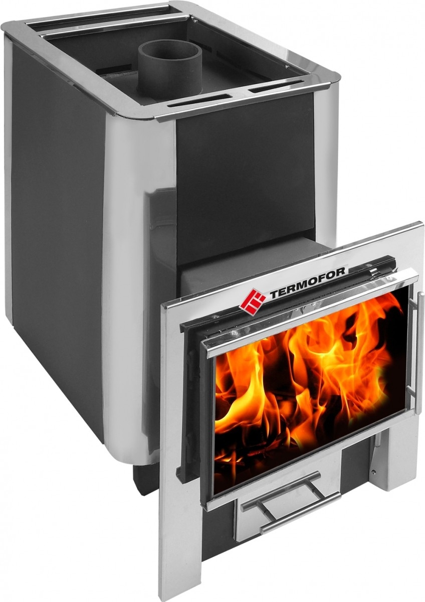 В линейке банных печей ООО «Термофор» прошла испытания и вышла в серию дровяная печь с закрытой каменкой «ДоброПар 18-24 Плазма» топка из нержавеющей стали.