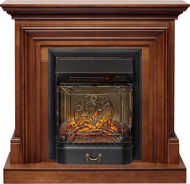 Схожесть с натуральным камином усиливается звуком потрескивающих дров и двухступенчатой системой обогрева. Управлять электрокамином можно с помощью пульта ДУ, который входит в комплект поставки.