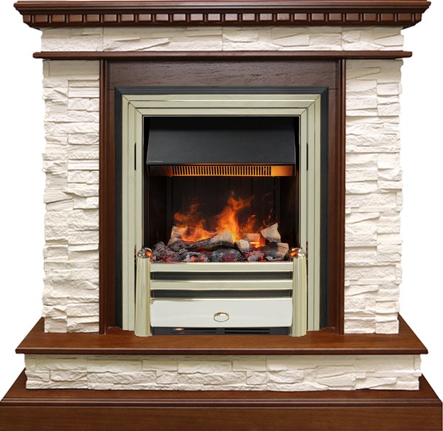 Электрокамин выполнен в золотом цвете. Золото – это материал, который никогда не выйдет из моды, это свидетельство безупречного вкуса и верности традициям. Цвет золота подчёркивает неповторимый стиль и необычность этого камина. К очагу можно подобрать любой портал, который подойдет к вашему интерьеру и станет его лаконичным продолжением. В очаге Dimplex Cavendish применяется эффект «живого» пламени Opti-Myst, в основу которого заложен инновационный принцип имитации огня - в очаге мерцает пламя, практически неотличимое от настоящего. В камине используется муляж дров ручной работы, которые невозможно отличить от настоящих поленьев, а благодаря подсветке создается полная имитация жарко пылающего очага.