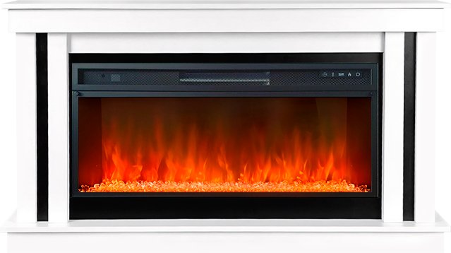 В качестве внутреннего декора используются стильные прозрачные кристаллы и разноцветная галька. Подсветку кристаллов и яркость пламени можно регулировать – доступно 4 возможных варианта. Модель дополнена звуковой имитацией потрескивания дров.