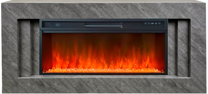 В качестве внутреннего декора используются стильные прозрачные кристаллы и разноцветная галька. Подсветку кристаллов и яркость пламени можно регулировать – доступно 4 возможных варианта. Модель дополнена звуковой имитацией потрескивания дров.