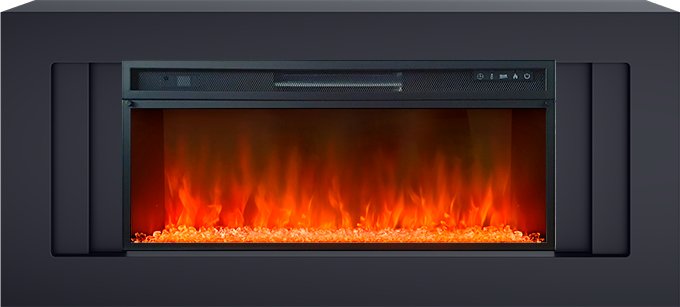 В качестве внутреннего декора используются стильные прозрачные кристаллы и разноцветная галька. Подсветку кристаллов и яркость пламени можно регулировать – доступно 4 возможных варианта. Модель дополнена звуковой имитацией потрескивания дров.