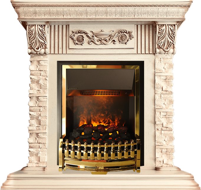 Электрический очаг Dimplex Atherton серии Opti-Myst с эффектом реального пламени. Этот стильный классический очаг в обрамлении золотого цвета предназначен для встраивания в порталы, выполненные в классическом стиле.