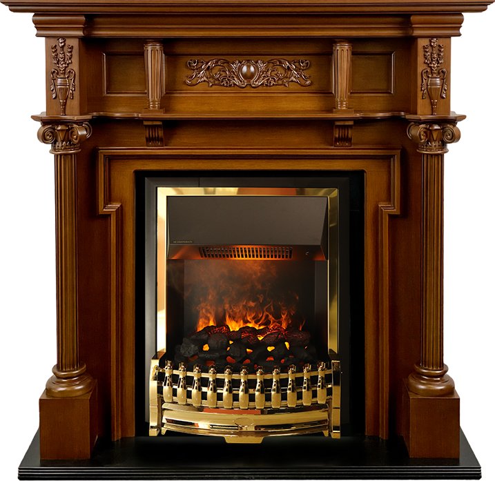 Электрический очаг Dimplex Atherton серии Opti-Myst с эффектом реального пламени. Этот стильный классический очаг в обрамлении золотого цвета предназначен для встраивания в порталы, выполненные в классическом стиле.