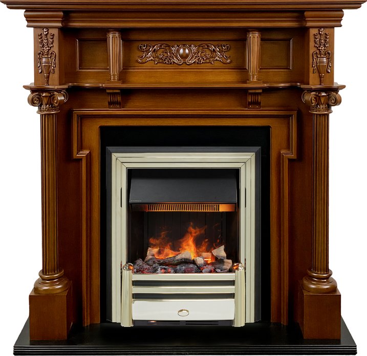 Электрокамин выполнен в золотом цвете. Золото – это материал, который никогда не выйдет из моды, это свидетельство безупречного вкуса и верности традициям. Цвет золота подчёркивает неповторимый стиль и необычность этого камина. К очагу можно подобрать любой портал, который подойдет к вашему интерьеру и станет его лаконичным продолжением. В очаге Dimplex Cavendish применяется эффект «живого» пламени Opti-Myst, в основу которого заложен инновационный принцип имитации огня - в очаге мерцает пламя, практически неотличимое от настоящего. В камине используется муляж дров ручной работы, которые невозможно отличить от настоящих поленьев, а благодаря подсветке создается полная имитация жарко пылающего очага.