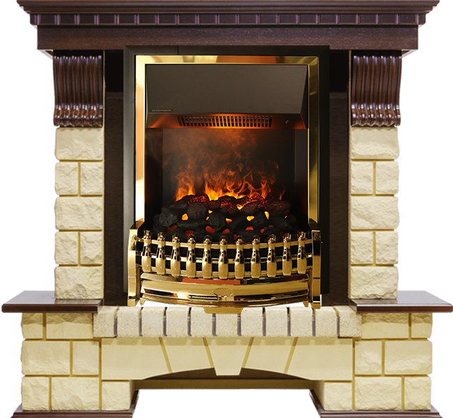 Электрический очаг Dimplex Atherton серии Opti-Myst с эффектом реального пламени. Этот стильный классический очаг в обрамлении золотого цвета предназначен для встраивания в порталы, выполненные в классическом стиле.