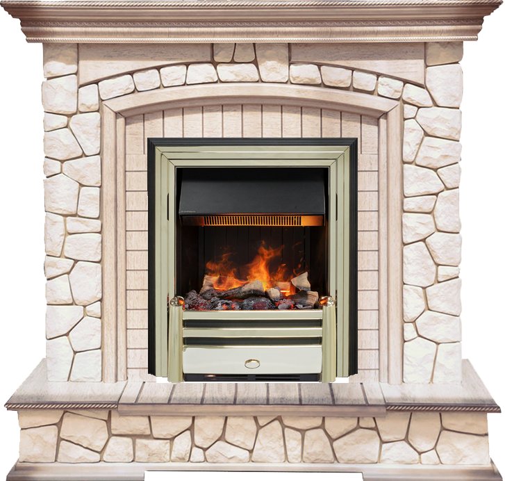 Электрокамин выполнен в золотом цвете. Золото – это материал, который никогда не выйдет из моды, это свидетельство безупречного вкуса и верности традициям. Цвет золота подчёркивает неповторимый стиль и необычность этого камина. К очагу можно подобрать любой портал, который подойдет к вашему интерьеру и станет его лаконичным продолжением. В очаге Dimplex Cavendish применяется эффект «живого» пламени Opti-Myst, в основу которого заложен инновационный принцип имитации огня - в очаге мерцает пламя, практически неотличимое от настоящего. В камине используется муляж дров ручной работы, которые невозможно отличить от настоящих поленьев, а благодаря подсветке создается полная имитация жарко пылающего очага.