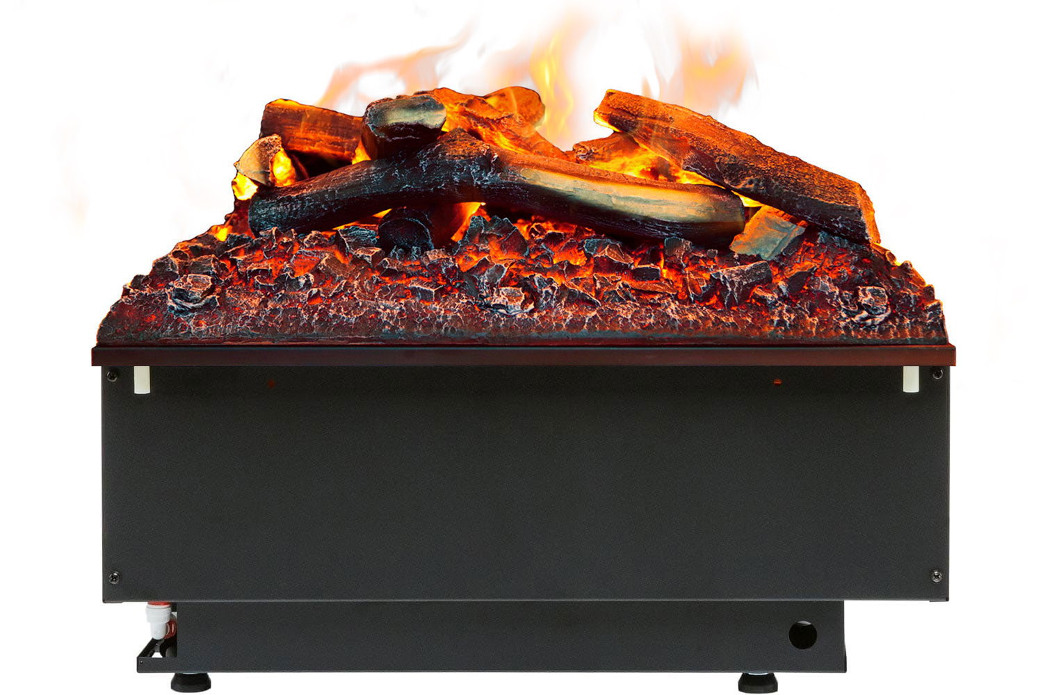 В очаге предусмотрена функция потрескивания горящих поленьев. Также добавлены такие опции, как возможность изменения интенсивности пламени в различных зонах очага и управление камином через беспроводной Bluetooth пульт ДУ.
