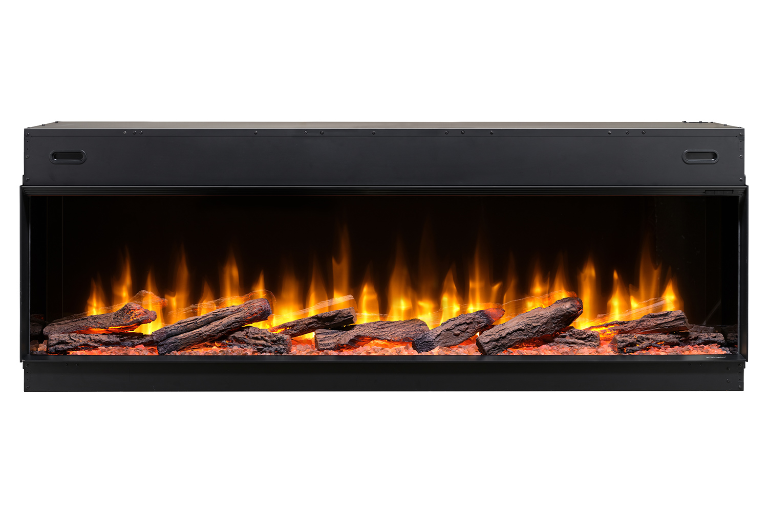 Модели отличаются вариативной установкой. По своему желанию вы можете разместить очаг с одной стеклянной панелью (фронтальная установка), с двумя панелями (угловая установка) или с тремя панелями (панорамная установка). Какой бы вариант установки вы ни выбрали, пламя всегда будет выглядеть роскошно: высота смотрового окна увеличена до 43,2 см для усиления общего впечатления от камина.