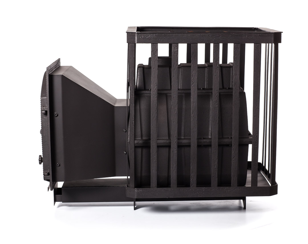 Печь предназначена для отопления парильных помещений 14-24 куб. м. Топка печи чугунная. Каменка в виде сетки из кованной стали. Выносной канал 30 см для топки печи из смежного помещения. Топочная дверца чугунная стандартная К505 Fireway, размер 490х490 mm. Загрузка дров фронтальная. Диаметр дымохода 115 мм. Расположение дымохода сверху. Отделка антрацит. Размер стекла 362х313х4 mm, стекло имеет радиус по арке. Гарантия 3 года.