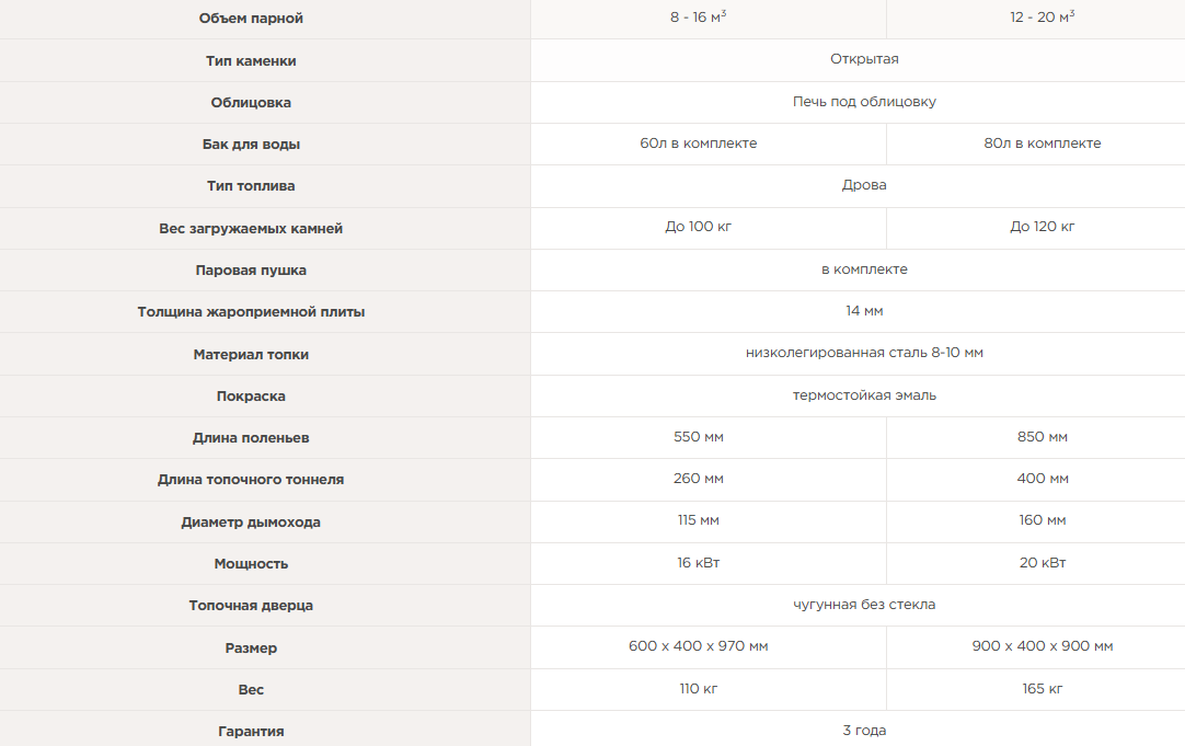 Объемная, не вентилируемая каменка позволяет получать большое количество пара, толстый металл топки и дымовых каналов обеспечит высокий ресурс печи (более 15 лет).