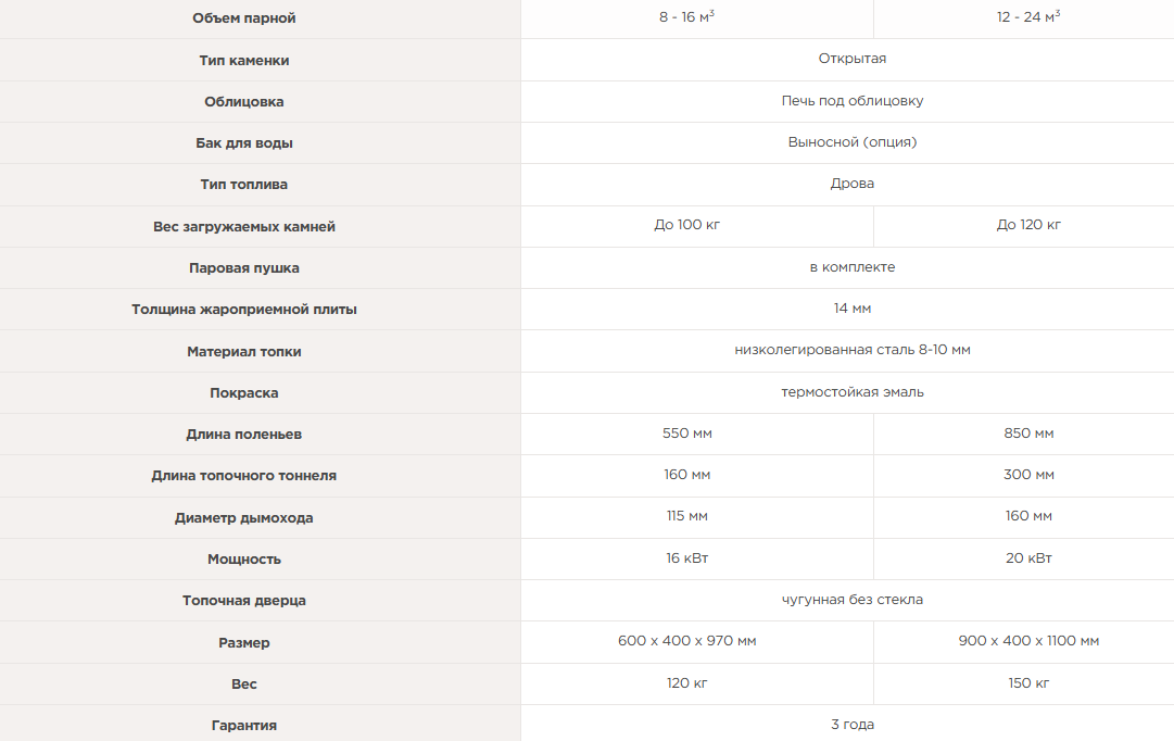 Объемная, не вентилируемая каменка позволяет получать большое количество пара, толстый металл топки и дымовых каналов обеспечит высокий ресурс печи (более 15 лет).