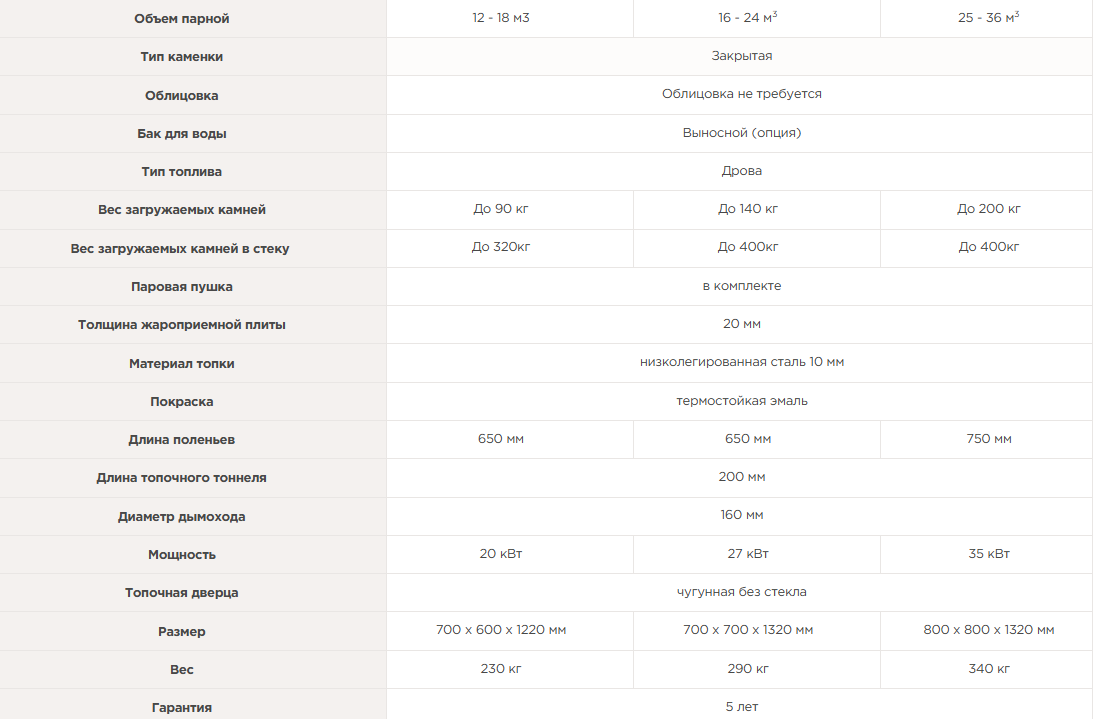 Огромная теплоемкость печи (ее вес с камнями порядка 1 000 кг) позволяет получать мягкий климат русской парной на протяжении длительного времени, не теряя качества пара.