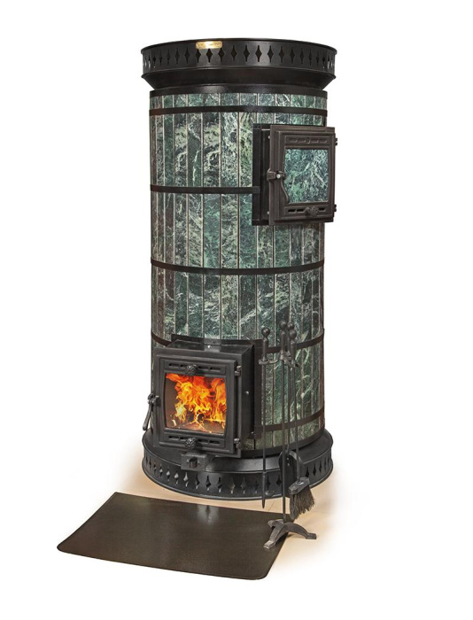 Идеально подходит для любителей банных процедур, когда площадь парной не позволяет поставить большую кирпичную печь, но микроклимат кирпичной печи сохранить хочется. Печь оборудована выносных тоннелем 250 мм для растопки из смежного помещения и чугунной дверцей с большим обзорным огнеупорным стеклом. В конструкции печи использованы клиновые кирпичи, что делает ее более прочной, а круглая форма обеспечивает равномерный прогрев всей поверхности. Тоннель печи защищен от перегрева чугунной вставкой. Корпус печи облицован керамической плиткой, придающей ей неповторимый оригинальный внешний вид. Печь устроена таким образом, что ПОД печи тоже греет, что способствует лучшему нагреву пола парной. Если есть необходимость в получении горячей воды- есть возможность (опция) установки встроенного теплообменника.