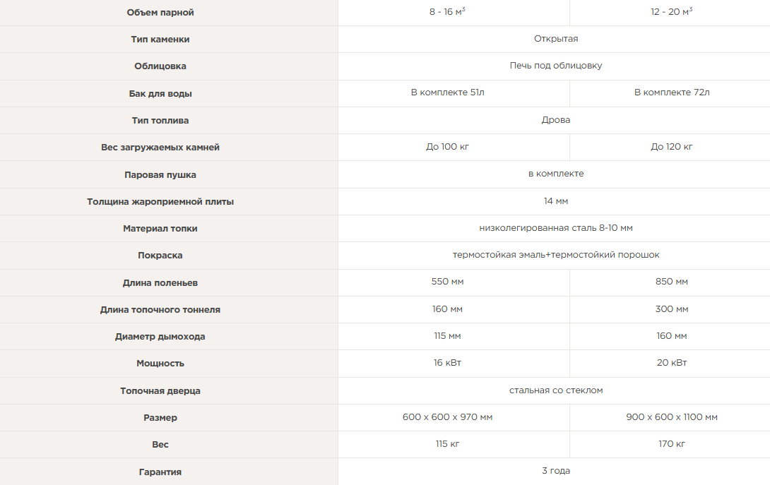 Объемная, не вентилируемая каменка позволяет получать большое количество пара, толстый металл топки и дымовых каналов обеспечит высокий ресурс печи (более 15 лет).