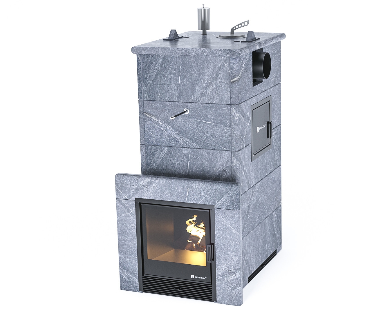 - Печь Геленджик М2 в полноценном кожухе с закрытым верхом с боковым подключением - Марка стали - AISI 430, Защита топки - Футеровка, Боковое подключение дымохода - Спереди, Боковой вход в каменку - Слева, Варианты кожуха - Талькохлорит, Вид топлива - Дрова