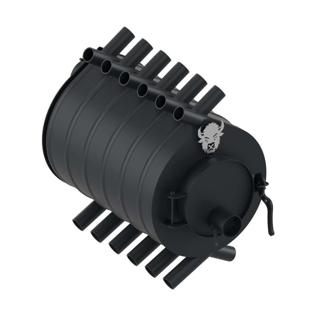 Печь из серии "Атлантика" - это цельносварная конструкция из стали покрытая жаропрочной краской. Топка состоит из двух камер сгорания. Верхняя — камера дожигания газов (в трубах имеются инжекторы-дожигатели). Нижняя — основная камера сгорания. Такая конструкция обеспечивает быстрый нагрев помещения.
