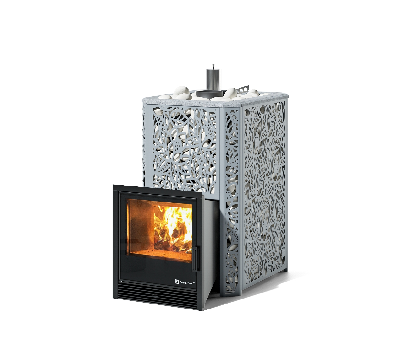- Печь Ялта 25/2025 - Вид топлива - Дрова, Варианты кожуха - Хохлома серый, Марка стали - AISI 321