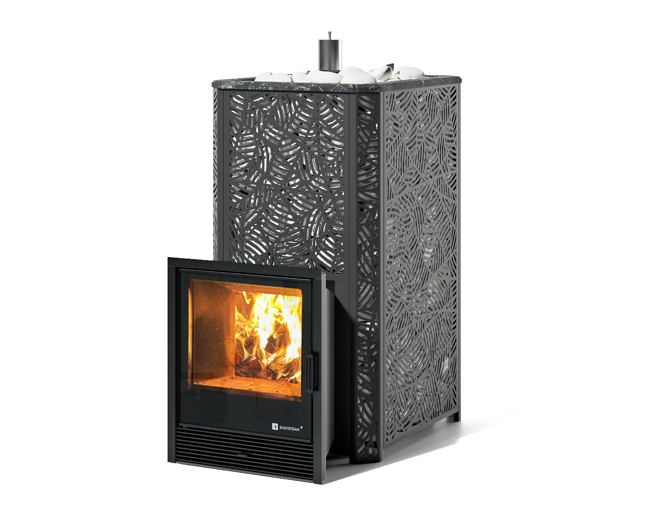 - Печь Ялта 40/2025 - Вид топлива - Газ Комплектация с САБК-40, Марка стали - AISI 321, Варианты кожуха - Хохлома черный
