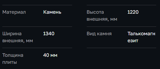 Талькомагензит – благородный камень метаморфического происхождения, имеющий высокое содержание магнезита. Он характеризуется самыми высокими теплоаккумулирующими свойствами, обладает повышенной прочностью, по сравнению с талькохлоритом. Импортный камень, поставляемый из Финляндии.
